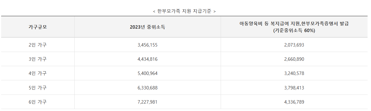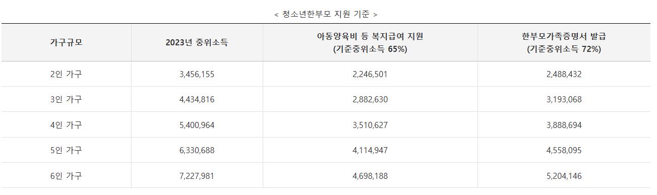 한부모 가족증명서 발급기준 : 기준중위소득 72% 이하(비급여)